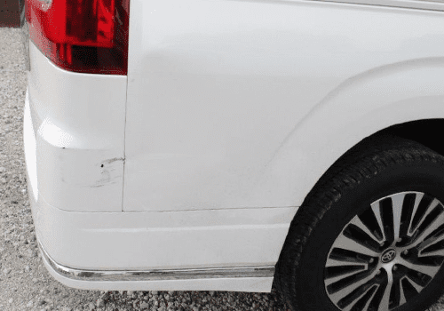 ワゴンタイプであるトヨタグランエースの修理事例です。当該車は駐車中の自損で右リアフェンダーとリアバンパーを損傷しました。<