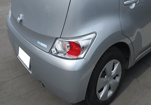 トヨタ bBの修理事例です。当該車は右後方を自動車と衝突し、リアバンパーから右リアフェンダーにかけて損傷しました。