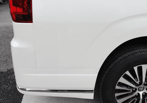 ワゴンタイプであるトヨタグランエースの修理事例です。当該車は駐車中の自損で右リアフェンダーとリアバンパーを損傷しました。<